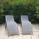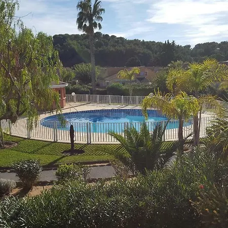 В пляжній віллі Tahiti Parc Maisonnette Climatisee 6 Pers 2 Chambre Le Lavandou є тераса з видом на басейн, а також відкритий басейн.